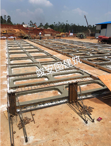 服務(wù)熱線: 四川竣安囤建筑工程有限公司為專業(yè)預(yù)應(yīng)力拱板施工公司,公司注冊資本為1000萬元。公司經(jīng)營范圍:住宅房屋建筑、房屋建筑工程、市政公用工程、土石方工程服務(wù)、防水防腐保溫工程、鋼結(jié)構(gòu)工程、橋梁工程、公路交通工程、地基基礎(chǔ)工程、園林綠化工程施工、水利水電工程、建筑裝飾工程、建筑勞務(wù)分包、砼結(jié)構(gòu)構(gòu)件制造、預(yù)應(yīng)力工程專業(yè)承包。 公司現(xiàn)有專業(yè)技術(shù)人員22人,均從事預(yù)應(yīng)力拱板施工超過10余年,技術(shù)力量強(qiáng)大,現(xiàn)場施工經(jīng)驗(yàn)豐富,能適應(yīng)各種預(yù)應(yīng)力拱板施工,專業(yè)技術(shù)工人500余人,專業(yè)隔板施工人員60人,木工120人,鋼筋工90人,混凝土工150人,專業(yè)電工、焊工20余人,專業(yè)張拉機(jī)手35人,專業(yè)拱板高空滑移就位人員50人,能進(jìn)行10余個工地同時施工。 公司先后承建了中儲糧荊門直屬庫掇刀分庫、中儲糧監(jiān)利直屬庫、 湖北省荊州川店儲備庫、湖北省咸寧儲備庫、湖南岳陽儲備庫、廣安火車站中直糧庫、湖北江陵儲備庫、湖北孝感儲備庫、廣安武勝國家糧庫、重慶秀山國家糧庫、云南玉溪紅塔區(qū)糧庫、云南西山區(qū)國家糧庫、云南曲靖陸良國家糧庫、云南江川糧庫、云南曲靖市糧庫、四川瀘縣嘉明糧庫、四川邛崍固驛種子庫、四川遂寧安居中直庫、云南石林糧倉、云南楚雄牟定糧庫、云南綏江縣糧庫、四川廣安儲備庫、云南盈江拆舊建新糧庫、貴州畢業(yè)糧庫、云南嵩明糧庫、重慶南川儲備庫、云南石林糧庫、遂寧直屬庫安居分庫、云南祿勸糧庫、綿陽三臺直屬庫、重慶渝西南糧庫、重慶墊江儲備庫、重慶永川儲備庫、重慶梁平儲備庫、重慶忠縣儲備庫、重慶江津儲備庫、重慶黔江儲備庫、黔江軍糧站、成都新都儲備庫、四川彭州儲備庫、四川蒙陽儲備庫、四川什邡儲備庫、四川遂寧儲備庫、廣安回龍儲備庫、達(dá)州開江物流園儲備庫、大理巍山儲備庫、大理云龍儲備庫、大理祥云儲備庫、云南威信儲備庫、昆明祿勸儲備庫、普洱景東儲備庫、臨滄雙江儲備庫、昭通大關(guān)儲備庫、楚雄南華儲備庫,庫房跨度24米。 公司專業(yè)承接預(yù)應(yīng)力拱板板制作,采用空中預(yù)制施工工藝,僅需在室內(nèi)地面進(jìn)行拱板隔板預(yù)制。重點(diǎn)在高空利用原有部分圈梁進(jìn)行加固改造形成張拉臺座,完成下弦板預(yù)應(yīng)力張拉,一次性完成拱板屋架混凝土澆筑,待拱板屋架整體砼達(dá)到設(shè)計(jì)強(qiáng)度時,實(shí)施放張,用千斤頂頂起拱板放置專用滑輪車上,運(yùn)用卷揚(yáng)機(jī)在水平圈梁上滑移至設(shè)計(jì)安裝位置。本工藝不需搭設(shè)滿堂腳手架(僅局部搭設(shè)),不需大型機(jī)械吊裝,不需大型堆碼場地,比地下預(yù)制成本低,安全可靠。比滿堂腳手架耗材少,是一種經(jīng)濟(jì)實(shí)用型工藝。